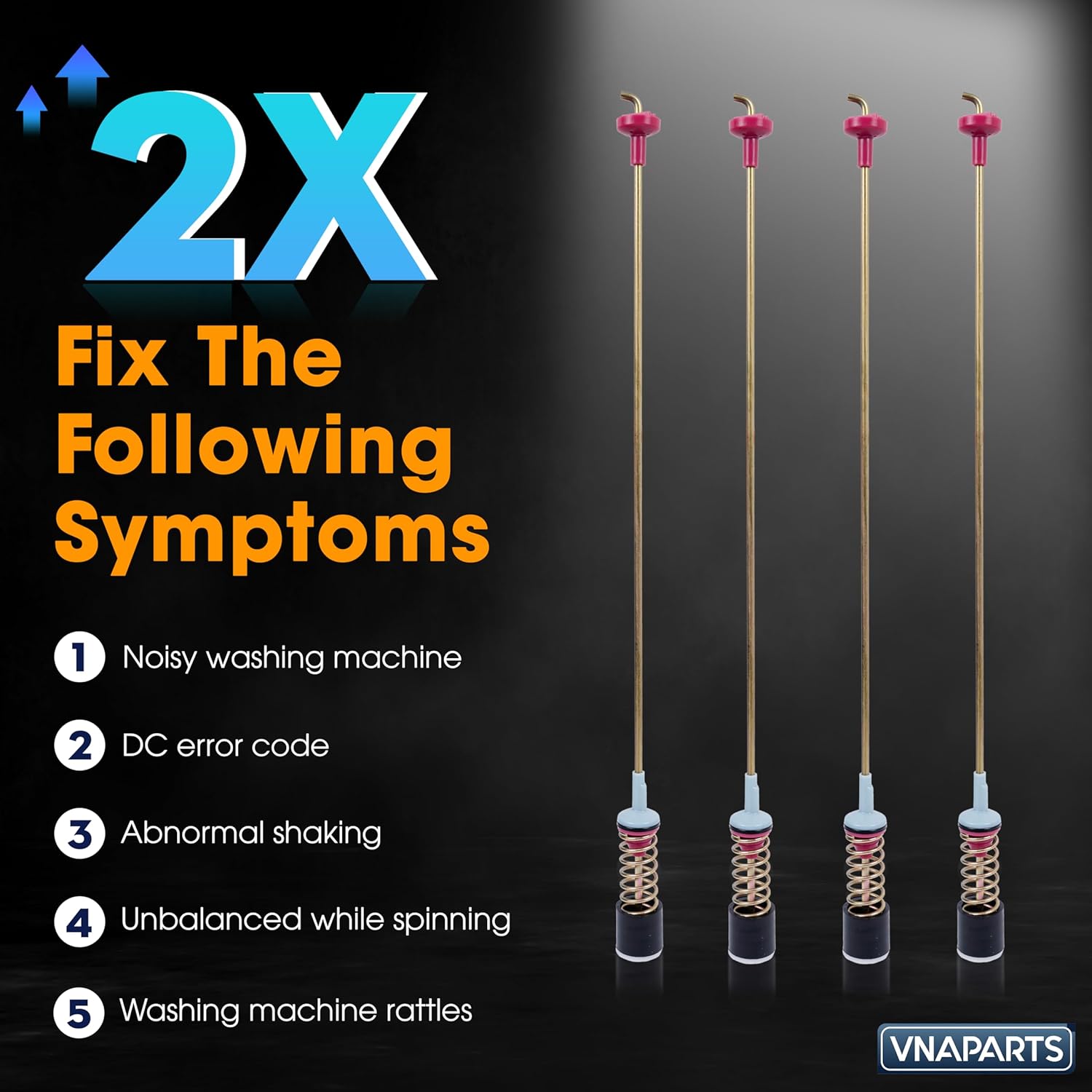 Upgrade and enhance the performance of your washing machine with our versatile Suspension Rod Kit. Engineered for broad compatibility, this kit is designed to compatible with Samsung washing machine suspension rodsPackage include 4 suspension rods for samsung washing machineReplace for Samsung WA40J3000AW A2-00 WA40J3000AW A2-01 WA40J3000AW A2-11 WA456DRHDSU AA-02 WA456DRHDSU AA-03 WA456DRHDSU AA-04 WA456DRHDSU AA-05WA456DRHDWR WA456DRHDWR AA-00 WA456DRHDWR AA-01 WA40J3000AW A2-12 WA40J3000AW A2-13 WA40J3000AW AA-11 WA40J3000AW AA-12 WA40J3000AW AA-13 WA422PRHDWR WA422PRHDWR AA-00 WA400PJHDWR AA-02 WA400PJHDWR AA-03 WA400PJHDWR AA-04 WA40J3000AW WA40J3000AW A2 (0000) (0001) (0011) WA456DRHDWR AA-02 WA456DRHDWR AA-03 WA456DRHDWR AA-04 WA45H7000AW AA WA45H7000AW AA-11 WA45H7000AW AA-12 WA45M7050AW A4-02 WA45M7050AW A4-03 WA45M7050AW A4-04 WA45M7050AW A4-05 WA50R5200AW US WA50R5400AV US WA50R5400AW WA45H7000AW AA-13 WA45H7000AW AA-14 WA45H7000AW AA-15 WA45H7000AW AA-16 WA45H7200AP WA45H7200AP A2-01 WA45H7200AP A2-02 WA45H7200AP A2-03 WA45H7200AW WA456DRHDWR AA-05 WA45H7000AP WA45H7000AP A2 WA45H7000AP A2-00 WA45H7000AP A2-12 WA45H7000AP A2-13 WA45H7000AP A2-14 WA45H7000AP A2-15 WA45H7000AP A2-16 WA422PRHDWR AA-01 WA422PRHDWR AA-02 WA456DRHDSU WA456DRHDSU AA-00 WA456DRHDSU AA-01 WA19J3000AW WA400PJHDWR WA400PJHDWR AA-01 WA45H7000AW WA45H7000AW A2-00 WA45H7000AW A2-01 WA45H7000AW A2-02 WA45H7000AW A2-03 WA45H7000AW A2-04 WA45H7000AW A2-10 WA45H7000AW A2-11 WA45H7000AW A2-12 WA45H7200AW A2-00 WA45H7200AW A2-01 WA45H7200AW A2-02 WA45H7200AW A2-03 WA45M7050AW WA45M7050AW A4-00 WA45M7050AW A4-01 US washerEnhance the stability and efficiency of your Samsung washing machine with our High-Performance Suspension Rod Kit. Built for durability and compatibility, this kit ensures a seamless installation process. Experience a quieter and smoother washing cycle thanks to its sturdy construction and easy-to-follow installation instructions.